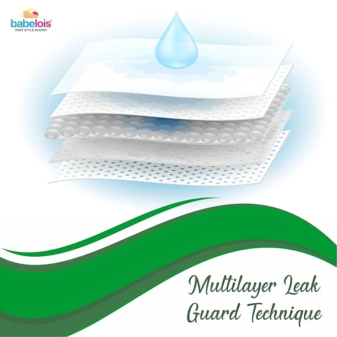 Babelois Baby diapers are so comfortable & it is enhanced by the flexible thigh support of the diaper, keeping the baby from leakage and delivering a peaceful and smooth sleep to the mother and the baby. Babelois’s pant-style diaper also has a multilayer leak guard technique which helps keep the baby leakproof for up to 12 hours.